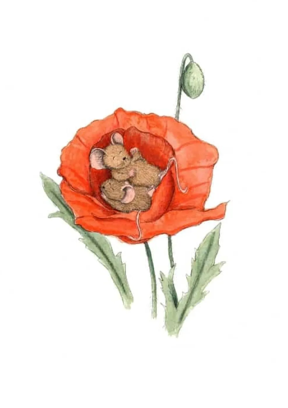 Anillustration Ansichtkaart Slapende muisjes in klaproos