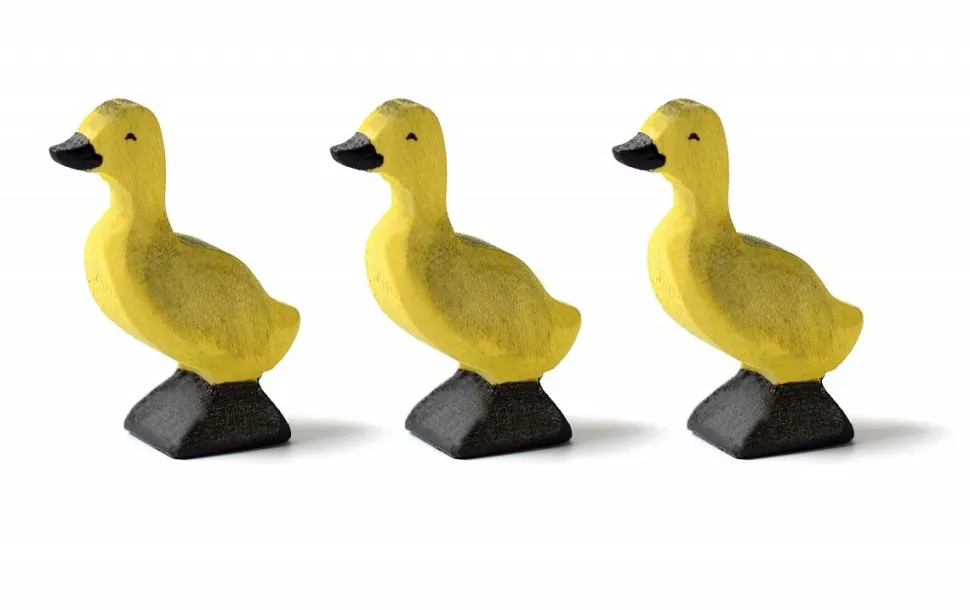 Dit is het eendenkuiken van bumbu toys gemaakt van esdoornhout, afgewerkt met niet giftige verf. De eendjes zijn 3.5 cm hoog.