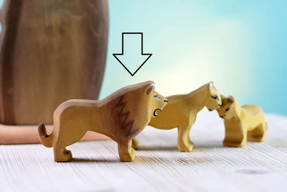 Dit is de mannetjes leeuw van bumbu toys gemaakt van esdoornhout, afgewerkt met niet giftige verf. De leeuw is 7 cm hoog.