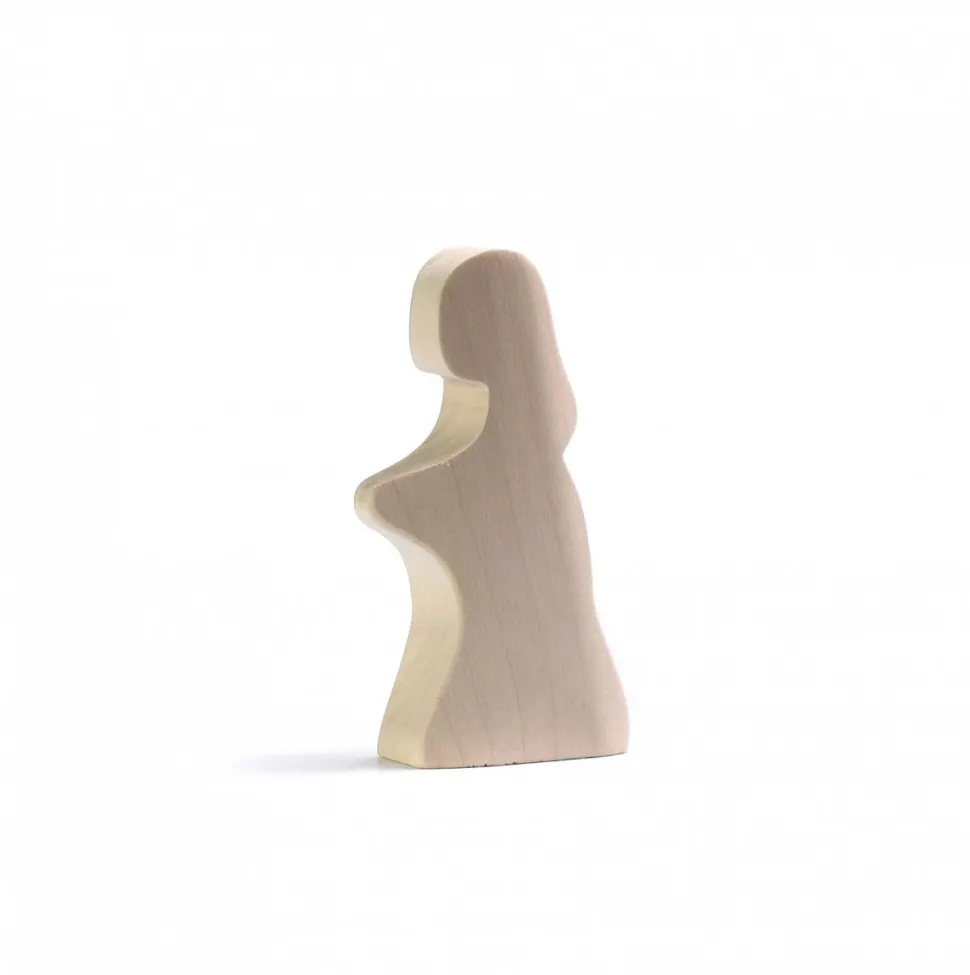Dit is het meisje van bumbu toys gemaakt van esdoornhout. Het meisje is nog niet geschilderd, dat kun je eventueel zelf nog doen. Het meisje is 9.5 cm hoog.