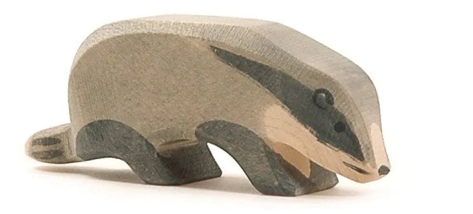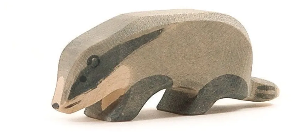 Deze das heeft zijn kop omlaag naar de grond gericht enkomt uit de reeks bos- en velddieren van Ostheimer. Hoogte: 4cm