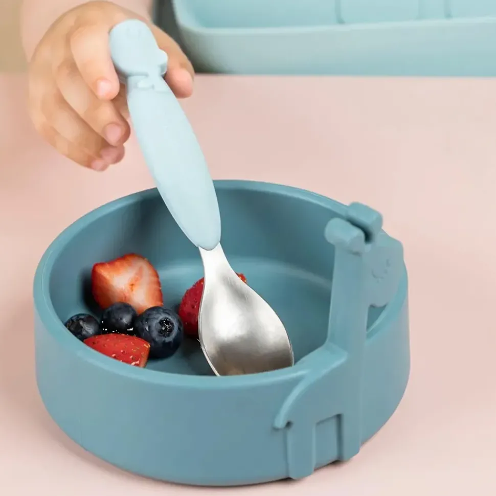 De Peekaboo first meal set is ontworpen om de nieuwsgierigheid van kleine eters te prikkelen. Elphee, Raffi en Wally gluren uit het servies – waardoor eten een extra leuk moment van de dag wordt. Een perfect formaat servies om zelfvoeding te leren geven.