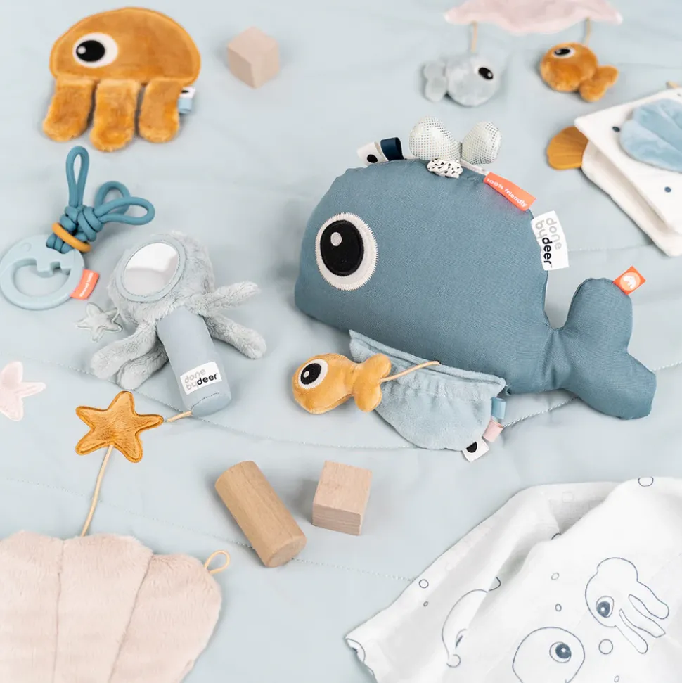 Done by Deer Rammelaar en Activiteitenknuffel Spiegel Jelly Blue