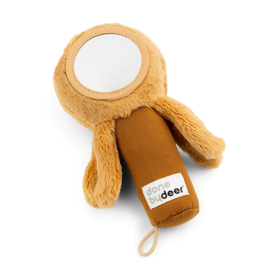 Done by Deer Rammelaar en Activiteitenknuffel Spiegel Jelly Mustard