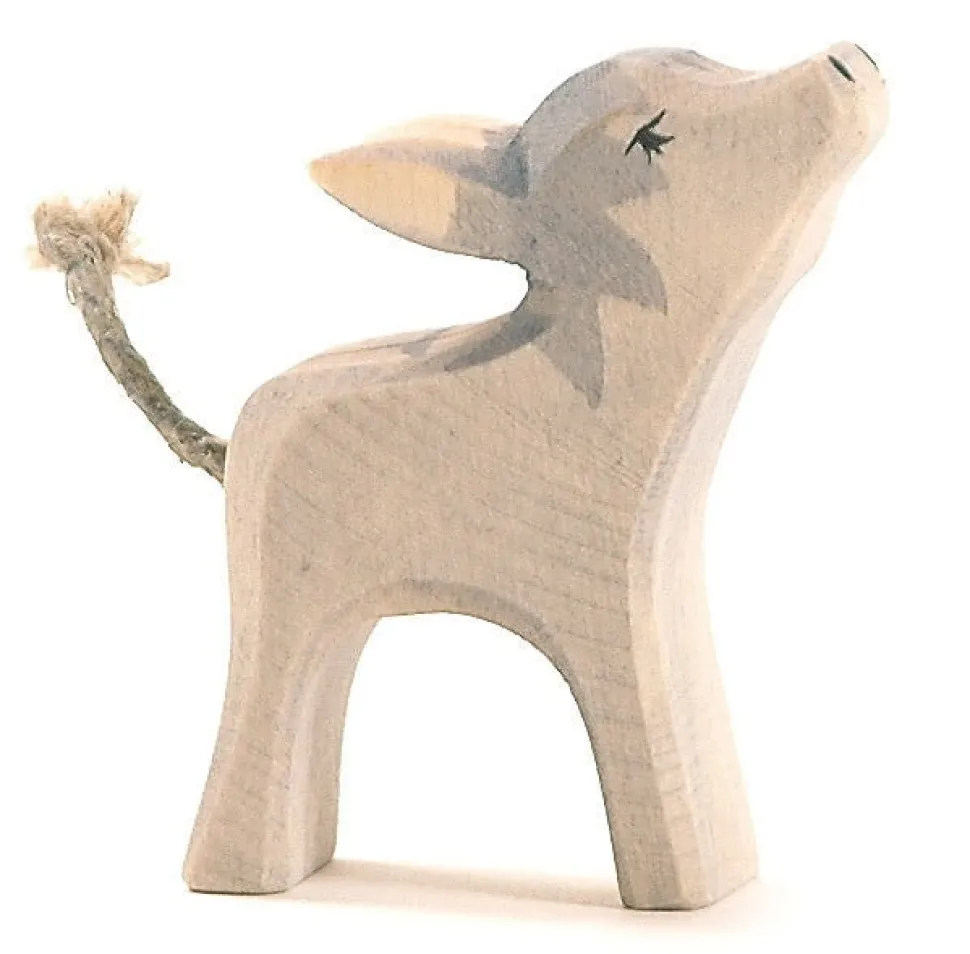 Deze kleine ezel staat rechtop en met zijn kop omhoog. Stel je eigen boerderij samen met de dieren en figuren van Ostheimer. Hoogte: 7.5 cm