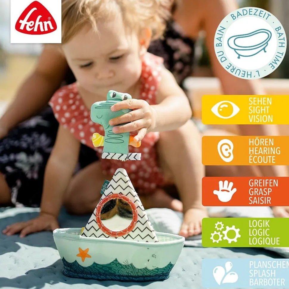 Fehn Badspeelgoed Bootje met Vingerpop Krokodil