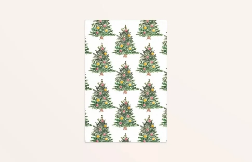 Kaart met print van kerstbomen, geschilderd met waterverf. De Kerst wenskaart is perfect voor bij een cadeautje of om te versturen. De kaart is gedrukt op mooi stevig papier, dus je kan het ook neerzetten ter decoratie.