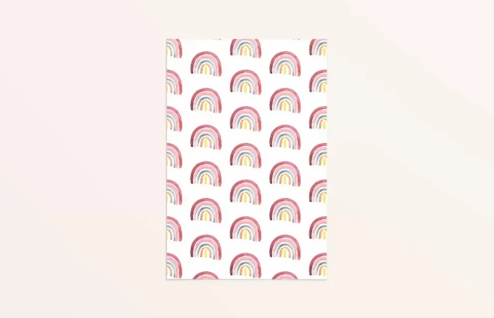 Kaart met een print van regenbogen, geschilderd met waterverf. De kaart is gedrukt op mooi stevig papier, dus je kan het ook neerzetten ter decoratie.