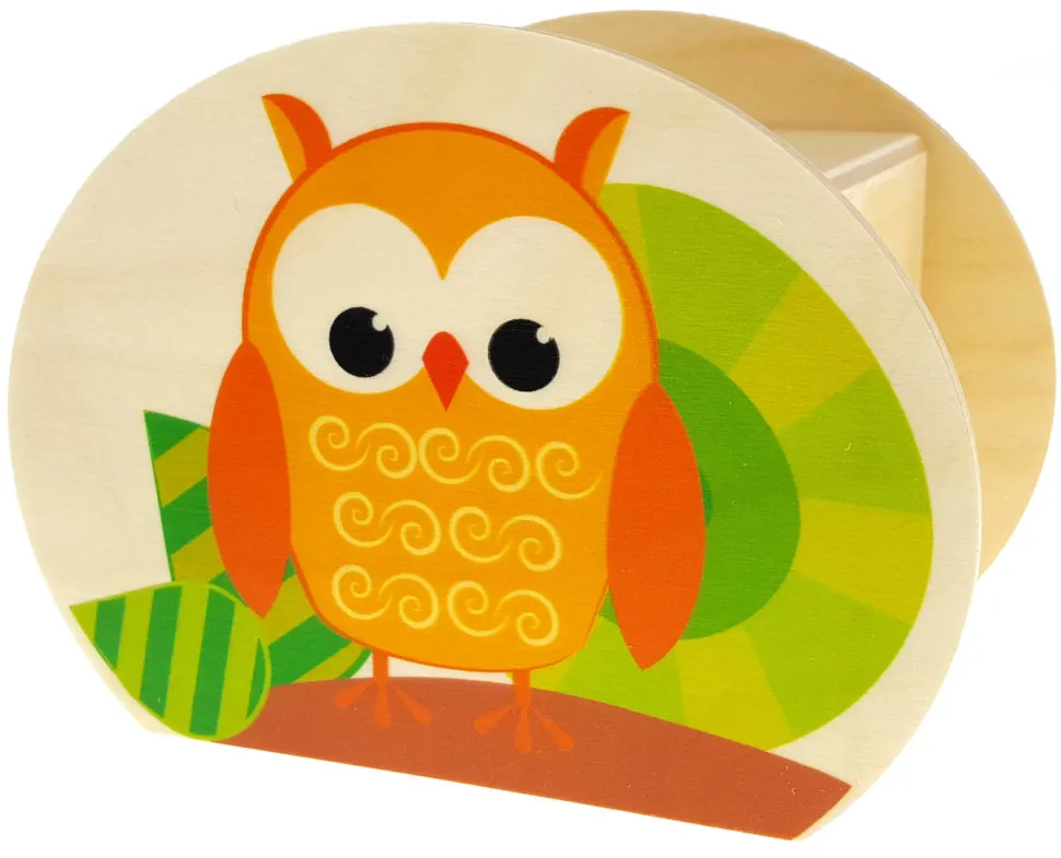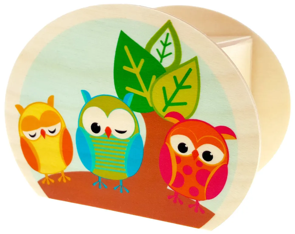 Een spaarpot die met de hand gemaakt is van hout. Deze spaarpot van Hess heeft aan beide zijden afbeeldingen van uilen. Leuk om te geven of te ontvangen.
