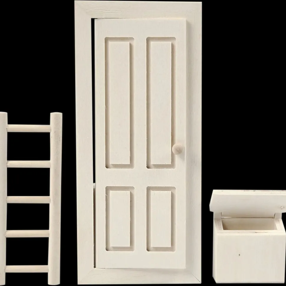 Verf het deurtje en gebruik de printjes van het knipvelletje om je deurtje te versieren. Op welk nummer zouden muizen wonen? Plak het deurtje en de brievenbus op de plint en plaats het laddertje erbij. Wie weet hebben de muizen morgen wel post!