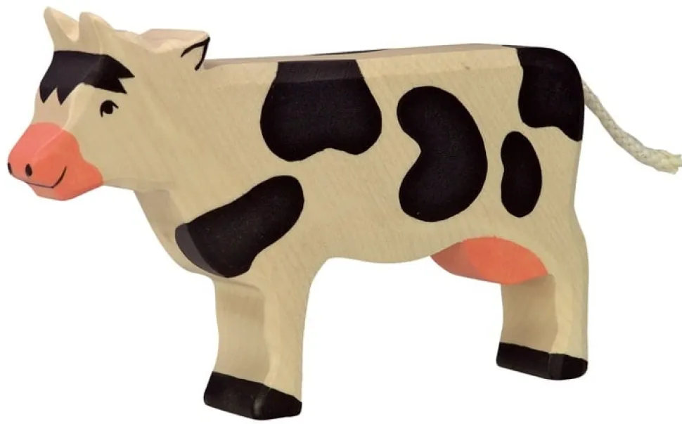 Maak je eigen boerderij met de dieren van Holztiger en daar mag deze koe niet in ontbreken. Deze van hout gemaakte koe staat rechtop met zijn kop vooruit. Afmeting: 17.5×2.8×11 cm