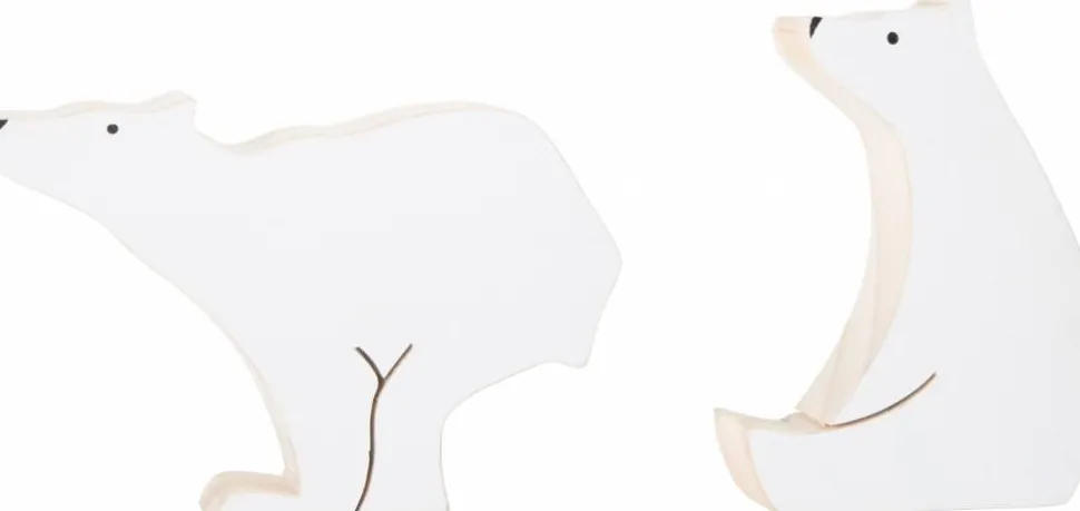 Een betoverende winterdecoratie kan worden gecreëerd uit deze twee witgelakte houten ijsberen. Deze ijsberen zijn juist wegens hun eenvoudige design een opvallende decoratie.