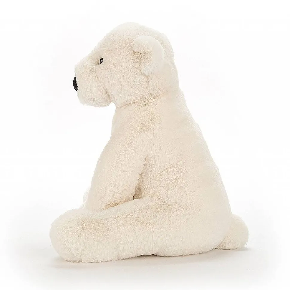 Perry polar beer van Jellycat is zo zacht als vers gevallen sneeuw. Met zijn witte vacht en zwarte neus en grappige staartje kunnen ze hem lekker dicht tegen zich aanhouden. Hoogte zittend: 26 cm.