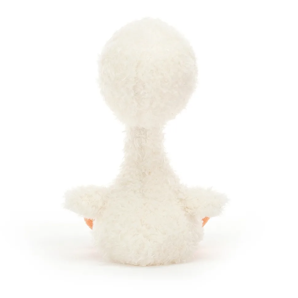 Quack Quack Duck van Jellycat is een echte eend met een lange nek en fladderende vleugels. Met zijn zachte vacht, heldere zwarte ogen en oranje poten en snavel waggelt en fladdert hij vrolijk in het rond. Hoogte zittend: 25 cm.