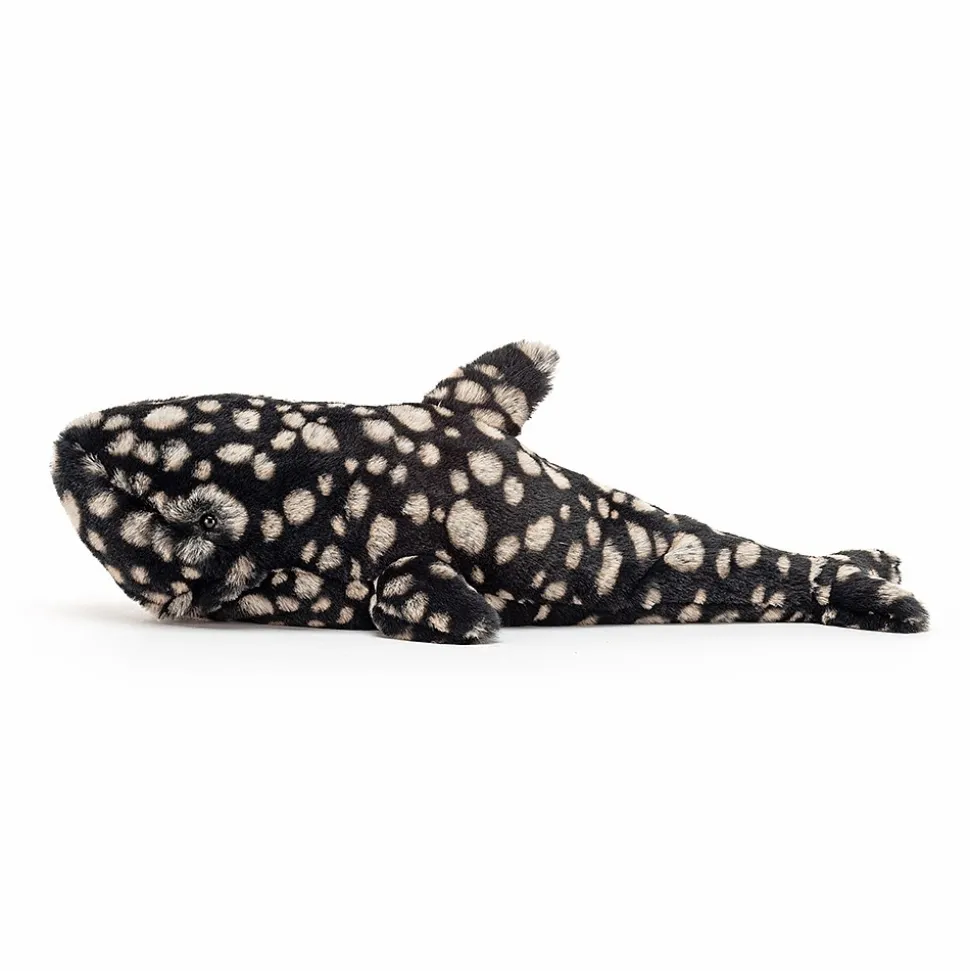 Pebbles Whale Shark van Jellycat zwemt sierlijk door de oceanen, maar wil de zee wel verlaten om naar jou toe te komen. Deze walvishaai is zo zacht dat je hem nooit meer los wilt laten.