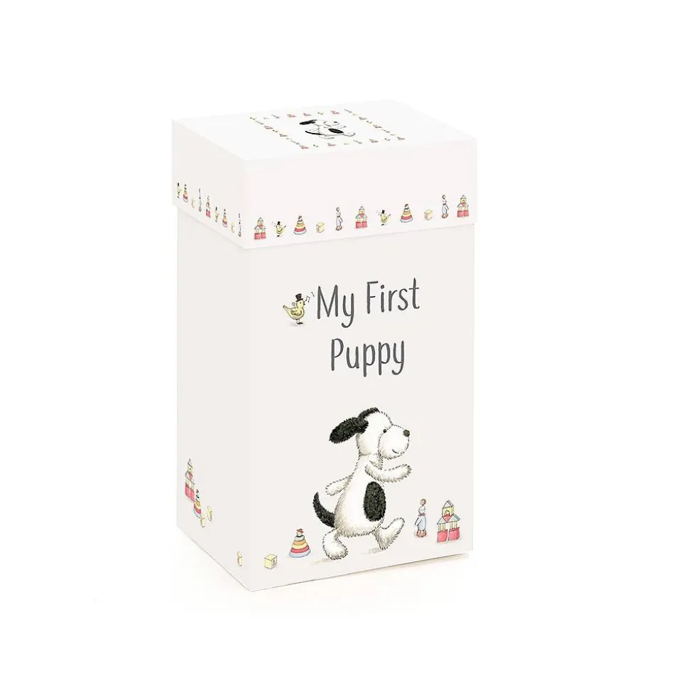 My first puppy van Jellycat is een heel mooi kraamcadeautje. Deze lieve knuffelhond wordt geleverd in een mooie geschenkverpakking. De puppy is knuffelzacht en heeft opvallend zwarte oren. Hoogte: 19 cm.