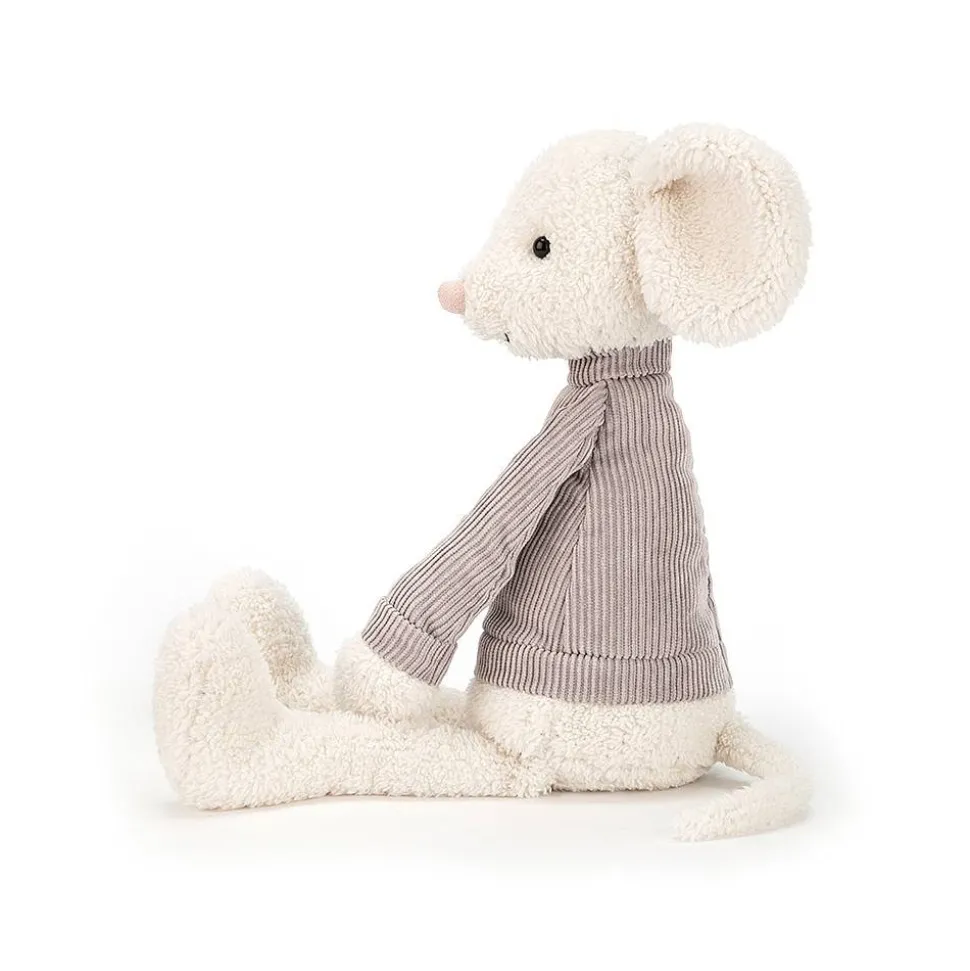 Knuffel muisJumble Mouse van Jellycat is klaar voor een wandeling, maar hij weet ook nu het kouder wordt dat hij zich goed moet aankleden. Daarom heeft hij zijn lila coltrui aangedaan. Die staat prachtig bij zijn zachte lichte vacht. Hoogte: 34 cm.