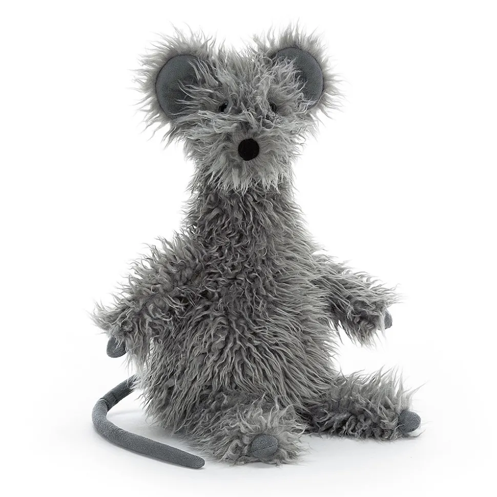 Remington rat van Jellycat is een relaxte rat die graag overal rondhangt. Met zijn tweekleurige vacht, zachte grijze oren en lange staart zit hij overal te kijken. Hoogte zittend: 28 cm.