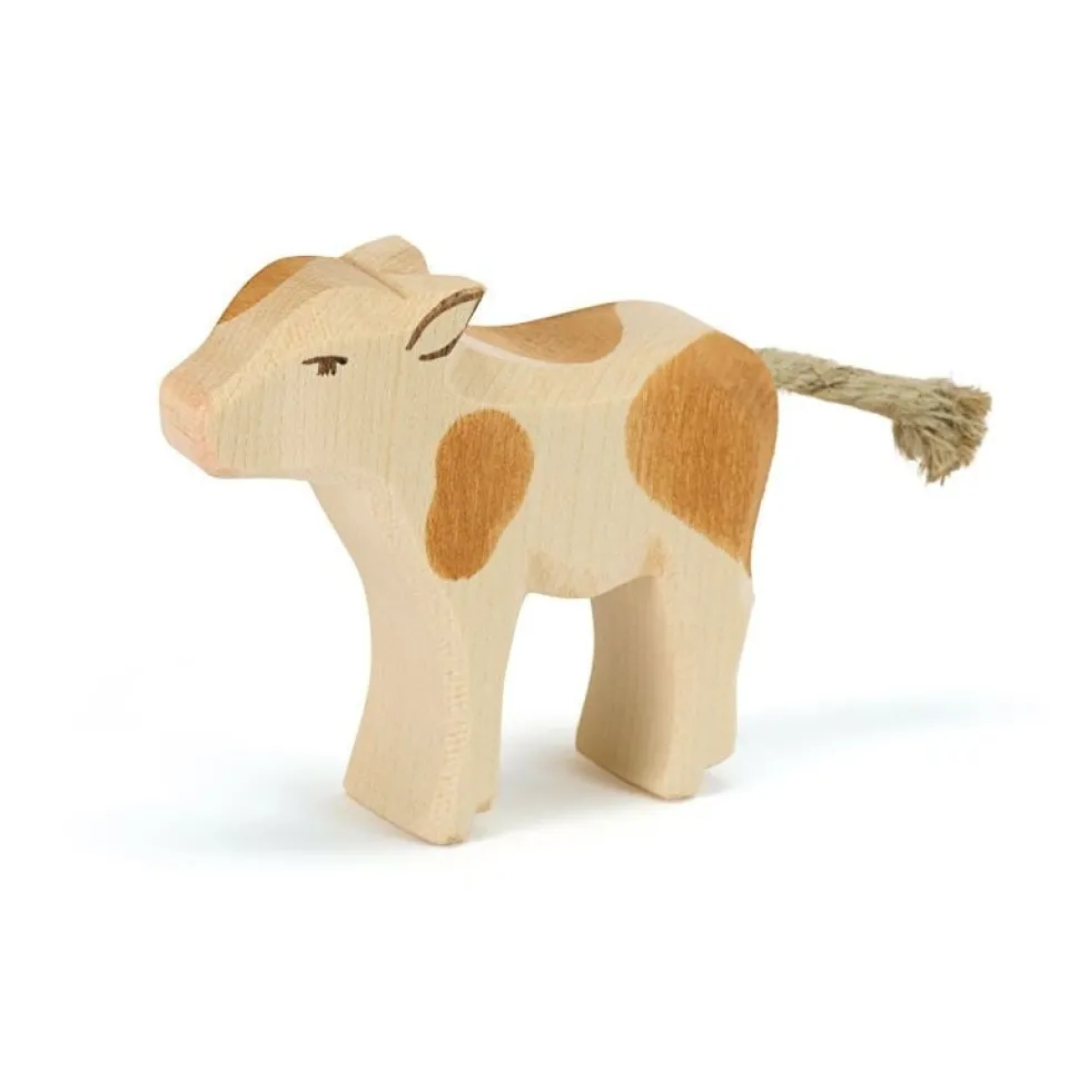 Ditbruin gevlekte kalf van Ostheimer staat met zijn kop omhoog te kijken. Hoogte: 7cm