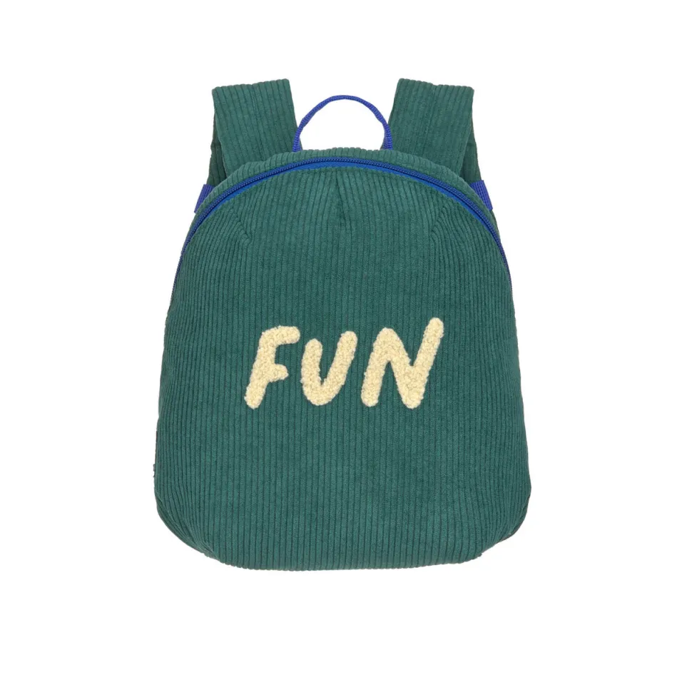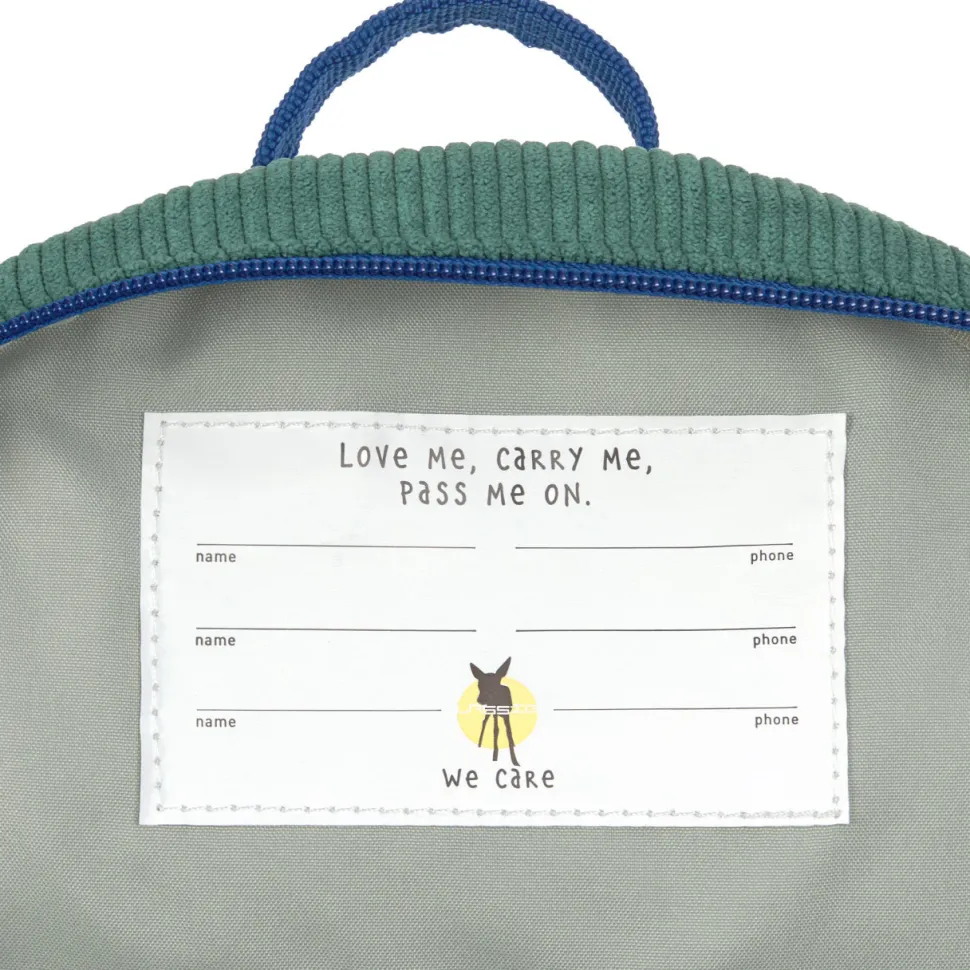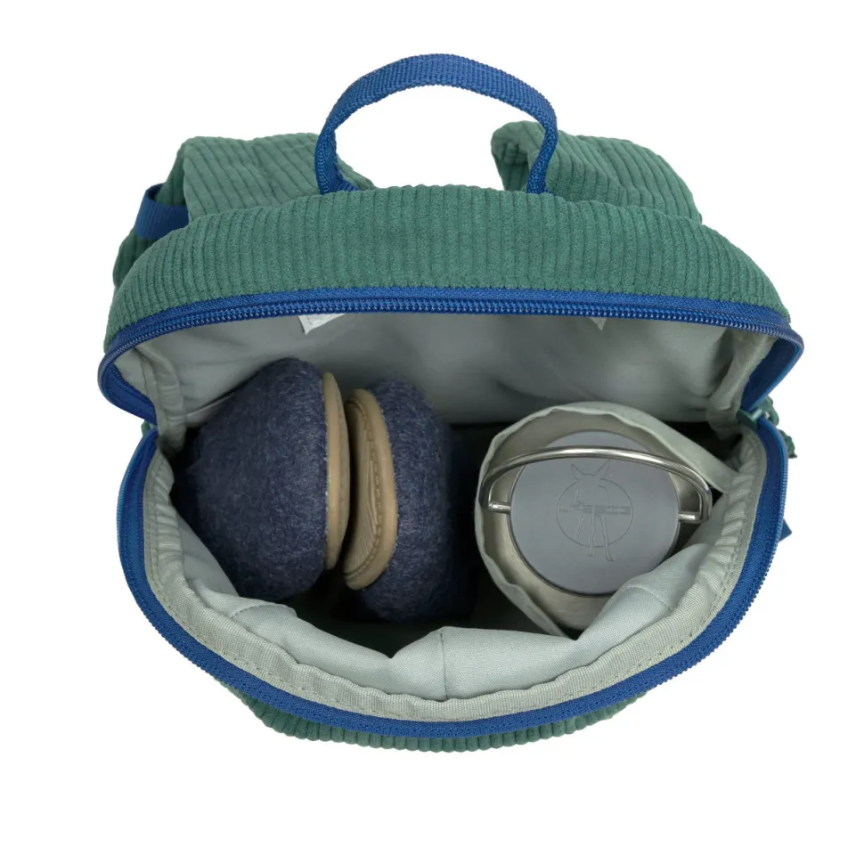 De groene kleuterrugzak van corduroy met 3D-borduursel is ideaal voor de kleuterschool, de crèche of op reis. De PFC-vrije kinderrugzak heeft een inhoud van 3,5 liter en is geschikt voor kinderen vanaf 2 jaar.