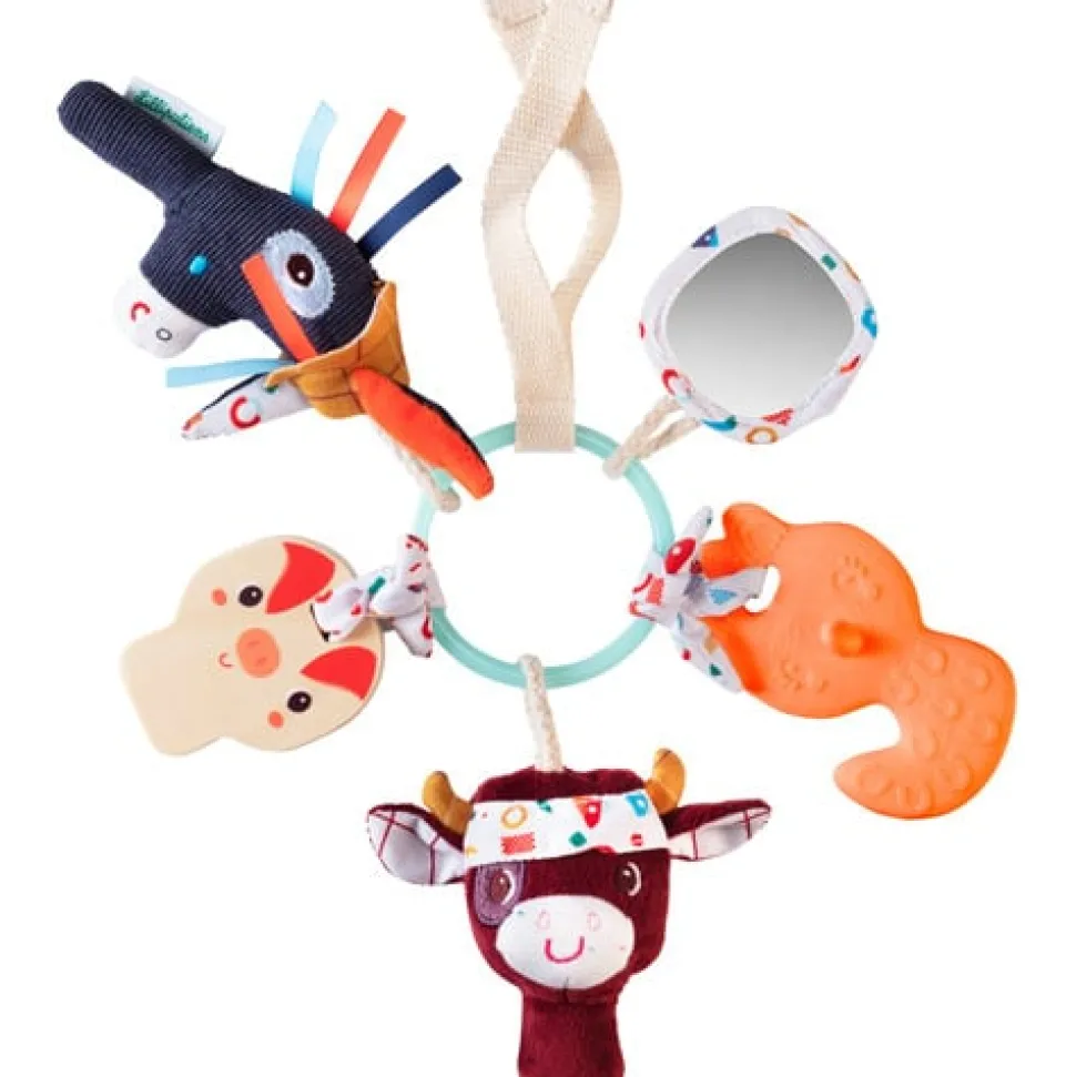 Een prachtige sleutelbos van Lilliputiens voor de kleintjes met een mix van materialen zoals hout, rubber om je tanden in te zetten, een spiegeltje en een rammelaar. De gebruikte materialen zijn baby vriendelijk.