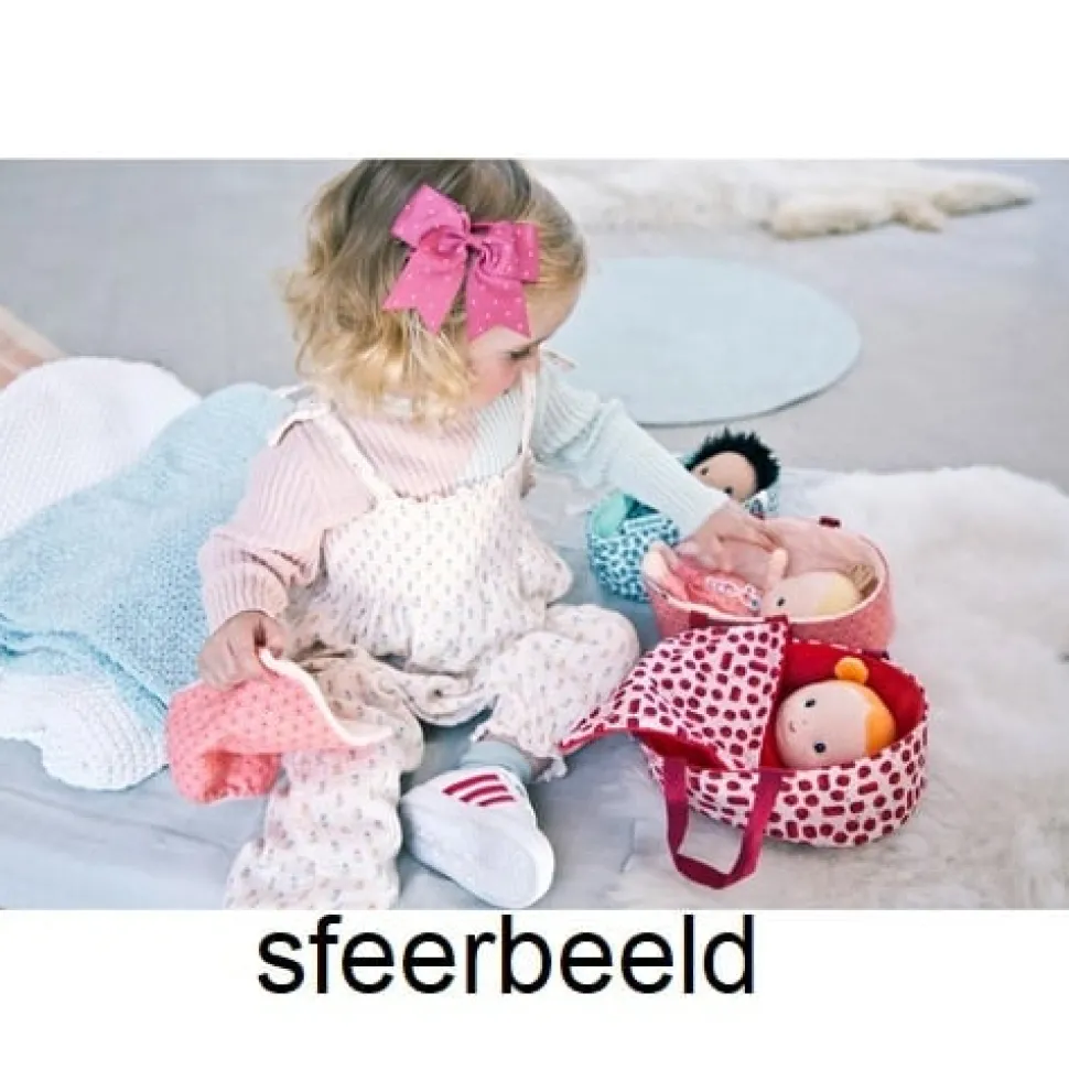Een popje om te verzorgen als een echte baby. Verschoon de luier en kleed haar aan en uit. Ze kan overal mee naartoe en slaapt in het reiswiegje. Stimuleert de fijne motoriek, empathie en het imitiatiespel. 22x12x7 cm