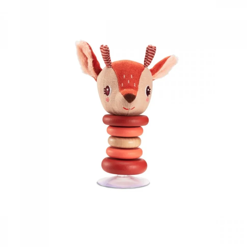 Deze rammelaar swingt vrolijk heen en weer bij het minste duwtje. Dankzij het zuignapje blijft hij stevig recht staan en kan je hem overal vasthechten.