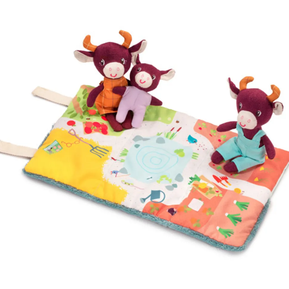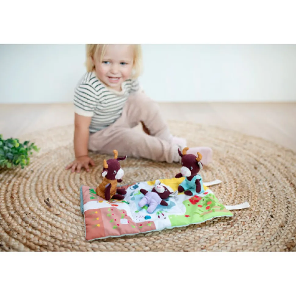 Wat een schattig koeiengezin deze familie van Rosalie van Lilliputiens. Het matje en de figuurtjes kunnen gemakkelijk overal mee naar toe genomen worden. Zo kan de kleine telkens weer nieuwe avonturen beleven met deze speelset. De kleertjes van de poppetj