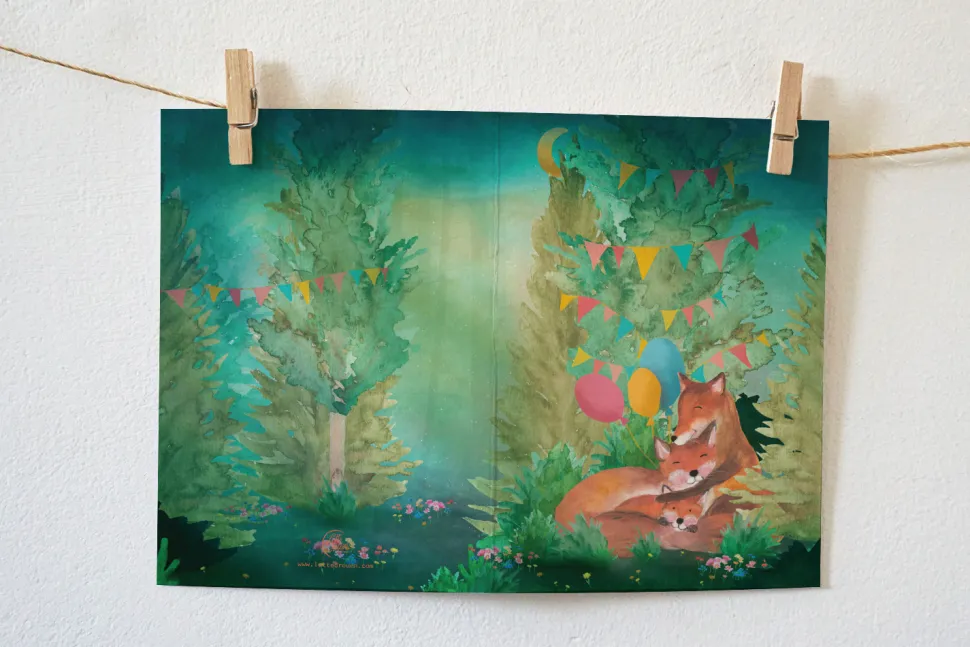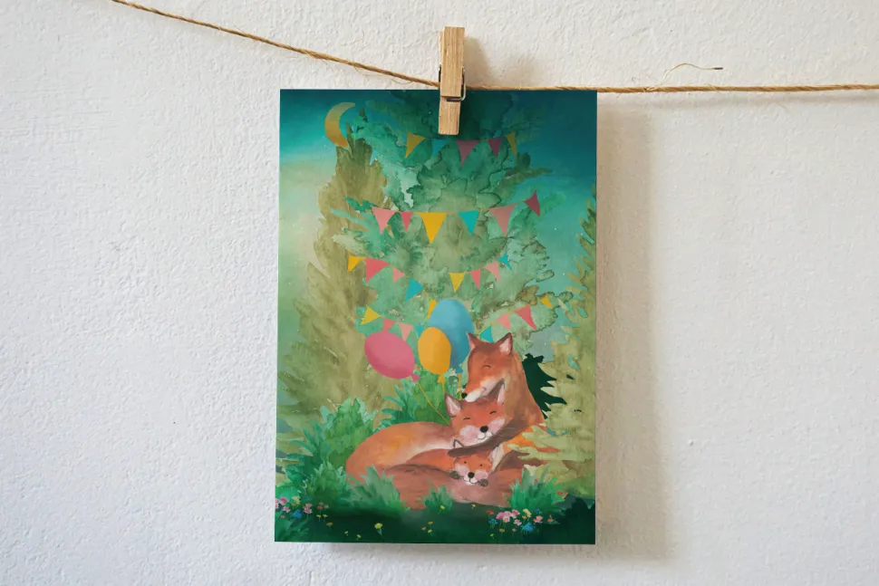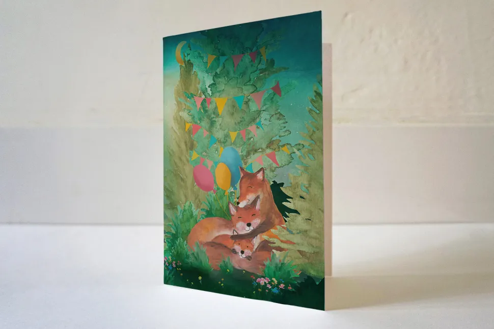 Lotte Drouen Wenskaart Lief Gezin met Vosjes