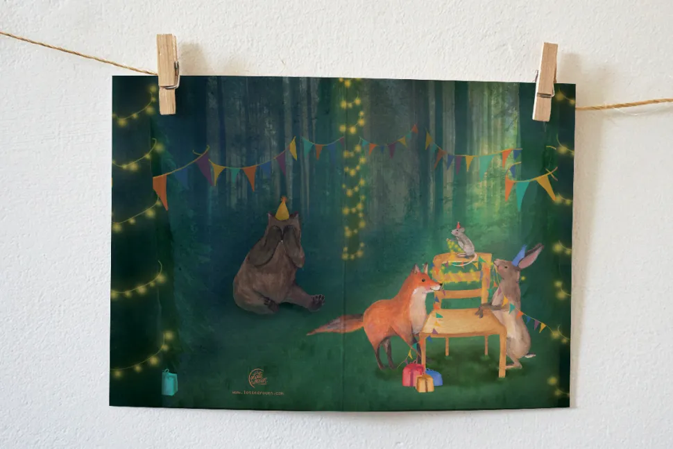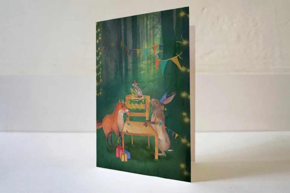 De illustratie van de kaarten van Lotte Drouen zijn door haar persoonlijk met de hand getekend en worden in kleine oplages gedrukt op mooi en dik structuurpapier. Het is zo net een klein schilderijtje. De wenskaart (gevouwen kaart) heeft een doorlopende illustratie op de achterkant. Binnenin is er ruimte voor een tekst. De wenskaart komt met een mooie kraftenvelop waarin de kaart verstuurd kan worden.