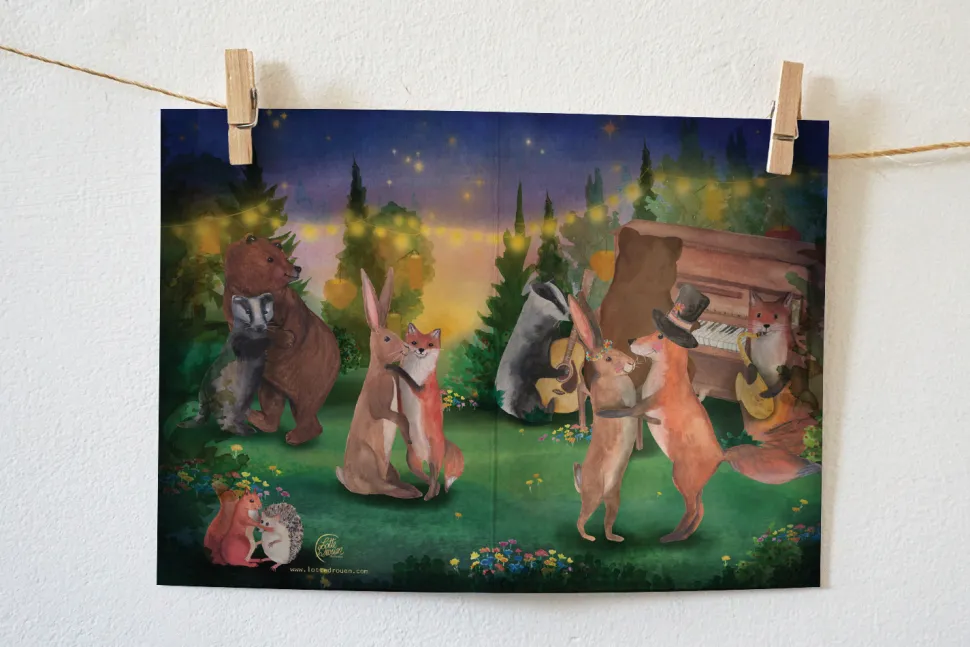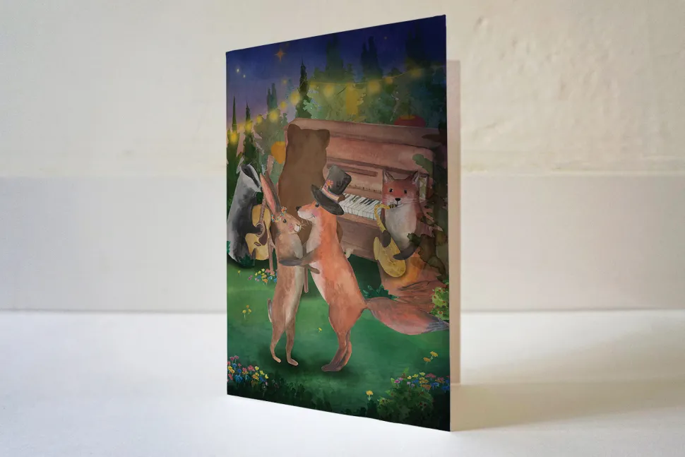 Lekker picknicken samen met bosdieren! Een betoverende wenskaart die het leven viert door aan te schuiven bij deze heerlijke picknick. Er is altijd wel een goede reden te bedenken om een mooi kaartje te sturen!
