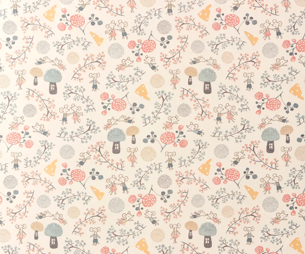 Dit cadeaupapier van Maileg wordt verkocht per 4 strekkende meter. Je kunt eenvoudig het aantal lengtes van 4 meter opgeven en wij zorgen dat het verzonden wordt. De breedte van het papier is 55cm.