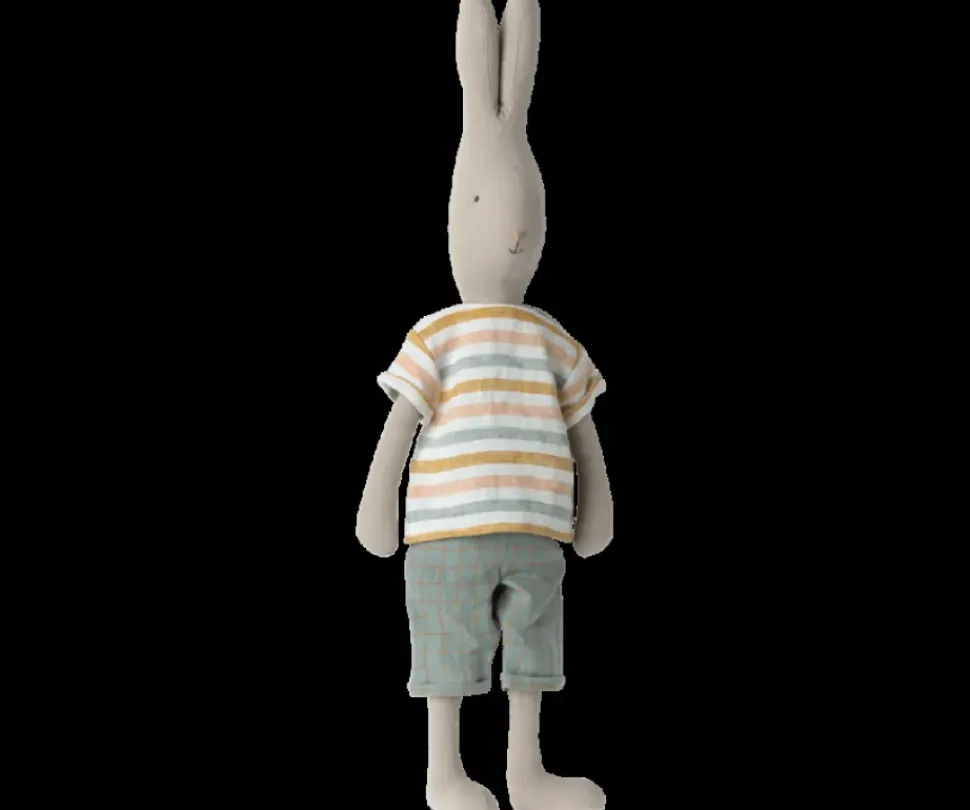 De bunny & rabbit collectie van Maileg is gemaakt van zacht natuurlijk linnen en katoen – wat een heerlijk handgevoel en uitstraling geeft. Dit konijn draagt een mooie broek en shirt.