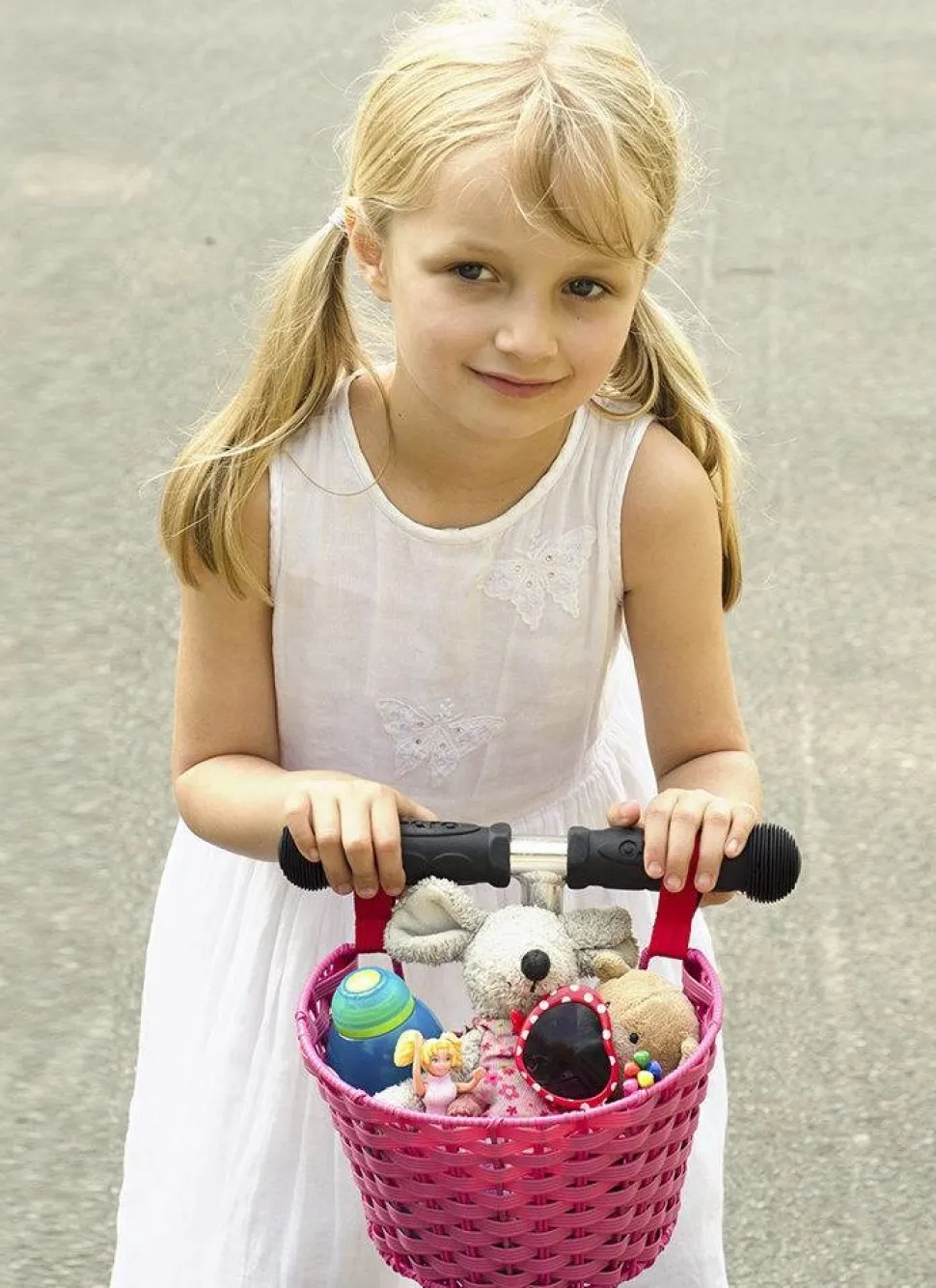 Leuk en praktisch mandje waar veel spullen in kunnen. Makkelijk te bevestigen aan step of fietsstuur met klittenband. Afmetingen 15x16x21 cm (21 cm hoog). Waterbestendig.