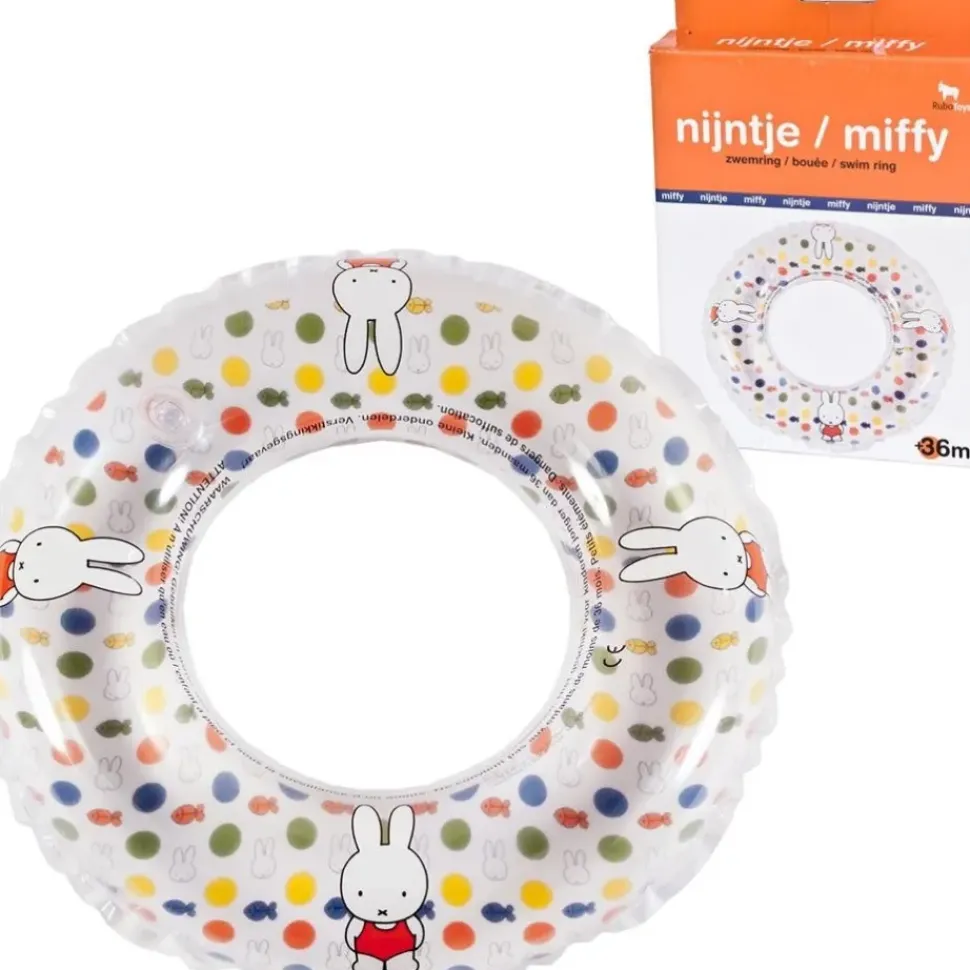 Als je gaat zwemmen doe je natuurlijk je zwemring om! Deze zwemring van Nijntje heeft vrolijk gekleurde stippen. Gemakkelijk mee te nemen en op te blazen.
