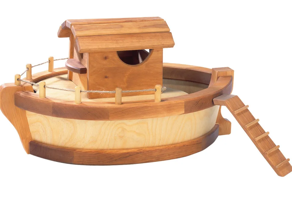 Deze ark van Ostheimer is gemaakt van inheems geteeld hout en afgewerkt met een natuurlijke olie. De ark is uit te breiden met een scheepshut of een mast met zeil. Dit artikel betreft alleen de romp met de trap.