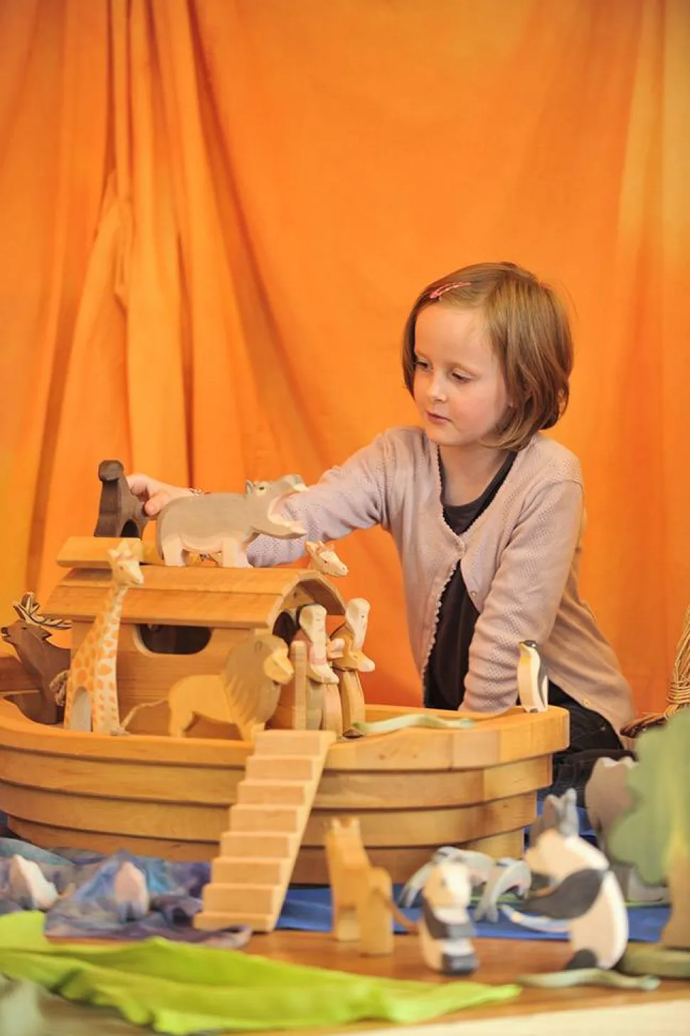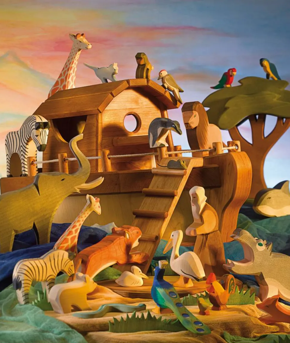Door de structuur van het elzenhout onstaat een bijzonder mooie ark. De van massief hout gemaakte ark is voorzien van een opstaptrapje en een kleine kajuit. In het ruim kun je de dieren en figuren van Ostheimer in opbergen. Hoogte: 35 cm