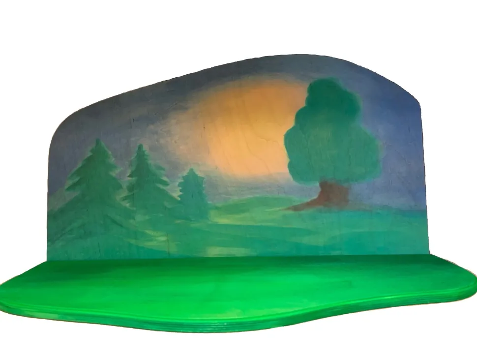 Maak je eigen bostafereel met deze houten decoratie weide van Ostheimer met op de achtergrond een paar geschilderde bomen. De set bestaat uit twee delen en kan eenvoudig met de bijgeleverde schroefjes aan elkaar worden vastgemaakt. Breedte: 69 cm.