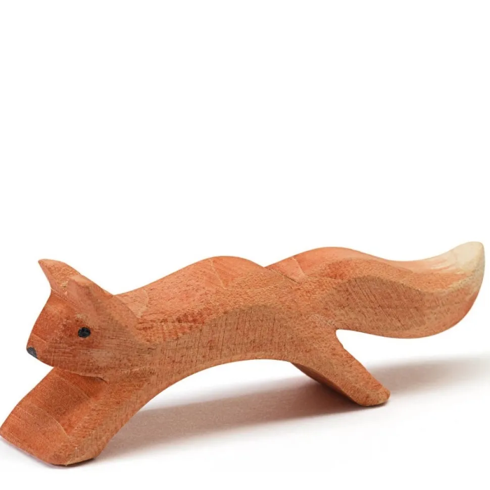 Deze van de hand van hout gemaakte eekhoorn van Ostheimer neemt een springende houding aan. Hoogte: 3 cm