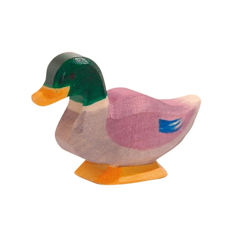 Deze eend van Ostheimer kijkt recht vooruit. Hoogte: 4.5 cm