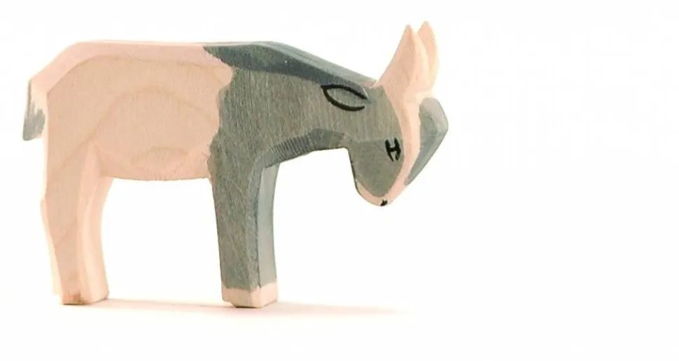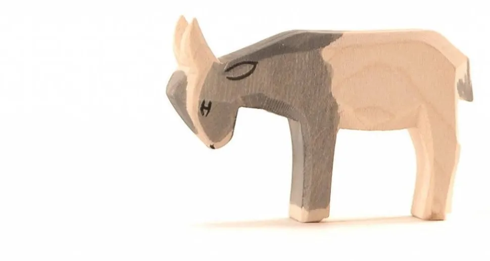 Deze geit van Ostheimer staat met zijn kop omlaag.Met dehand vanhout gemaakt en beschilderd. Hoogte:5cm
