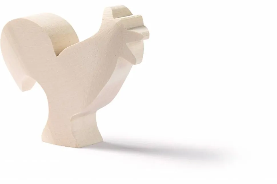 Deze haan komt uit de serie Creatief van Ostheimer. De dieren uit deze serie kun je zelf naar je eigen smaak verven. Je kunt eerst de scherpe randjes met een schuurpapiertje glad maken. Daarna kun je naar eigen inzicht de haan gaan verven. Hoogte: 6.5 cm