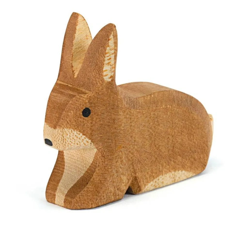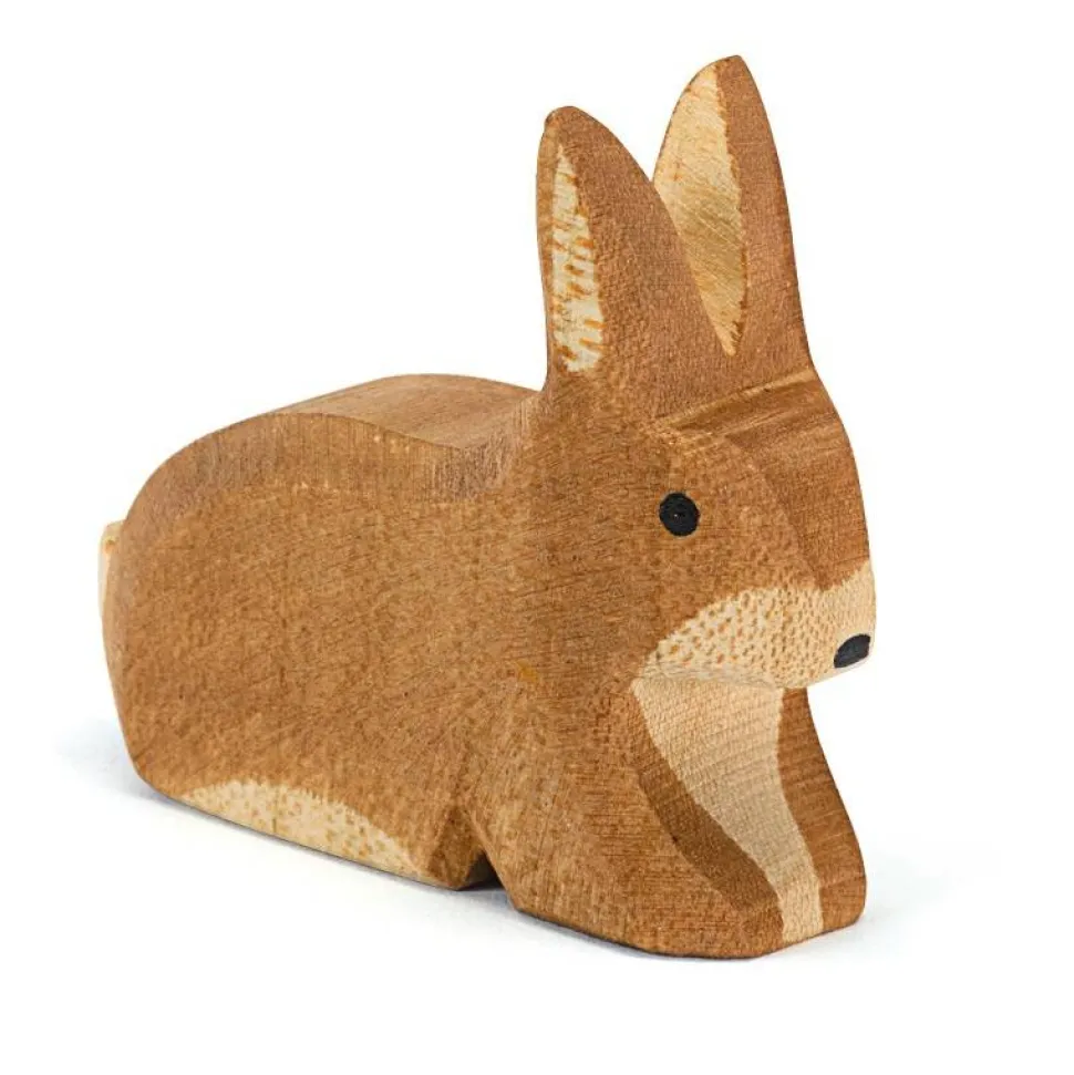 Dezegevlektehaas zit met zijn oren omhoog. Deze haas komt uit de reeks bos- en velddieren van Ostheimer. Hoogte: 4,2cm