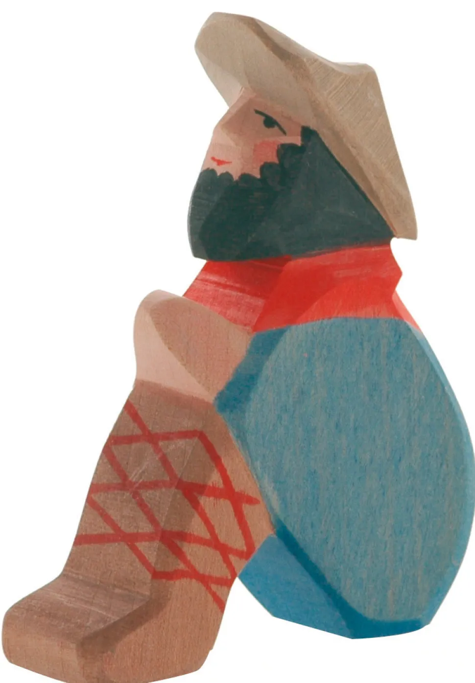 Deze met de hand van hout gemaakte herder van Ostheimer past natuurlijk in de kerststal maar in combinatie met een paar schapen en de herdersjongen ontstaat ook een mooi tafereel. Hoogte: 10.5 cm