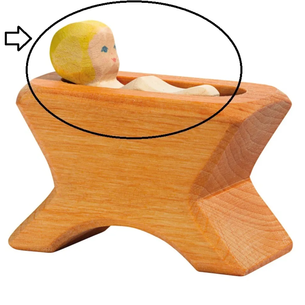 Dit is het figuur voor de kribbe (40403) van Ostheimer. Je kunt het kind natuurlijk in de kribbe 40403 leggen maar je kunt het bijv. ook op een dekentje van stof leggen bij de kerststal.