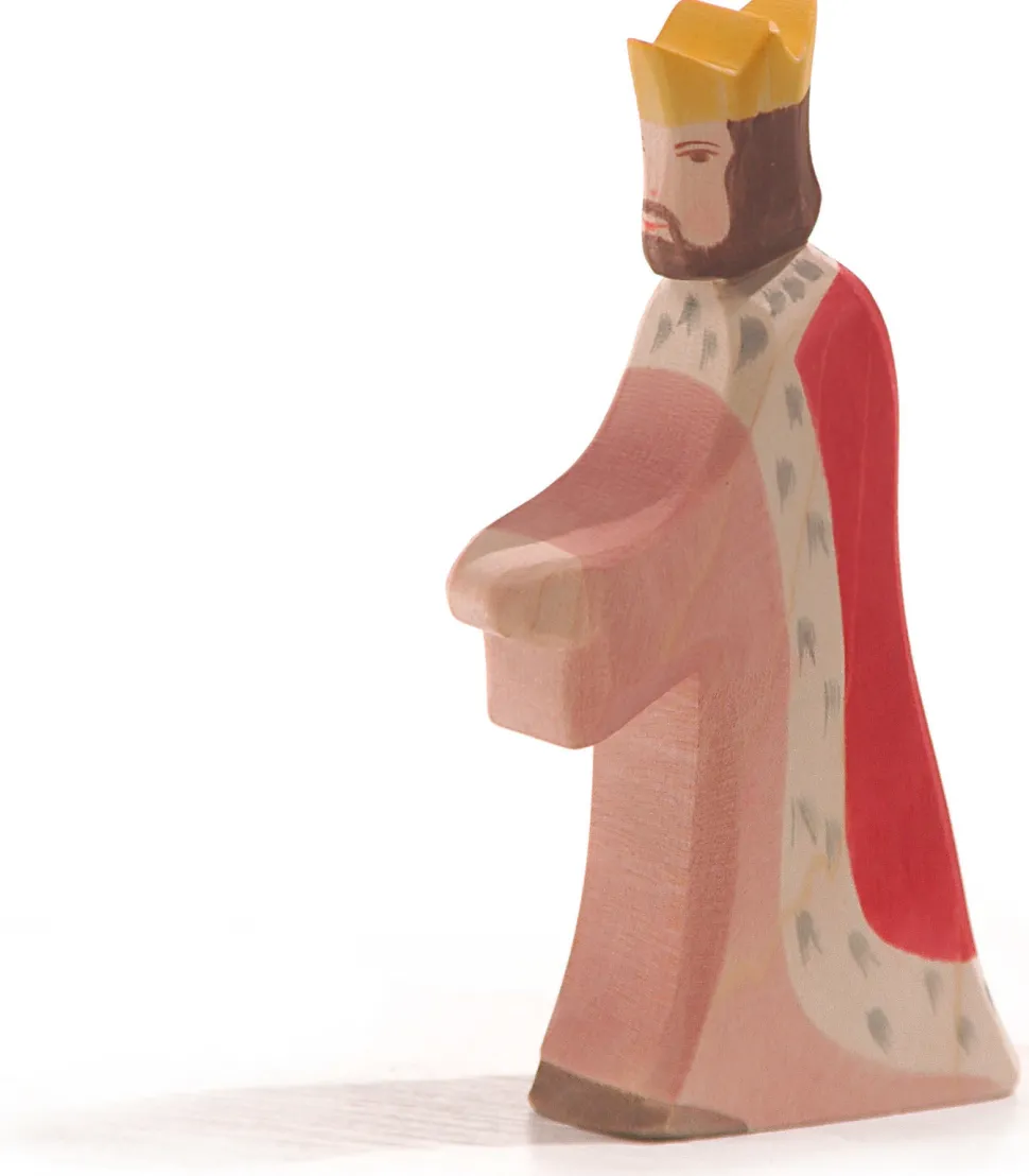 Dit is de koning in een rode kleurstelling van Ostheimer. Deze koning past goed bij de andere figuren waarmee je jouw eigen sprookjesscene kunt maken. Ostheimer figuren worden met de hand gemaakt van inheems geteeld hout. Hoogte: 16 cm.