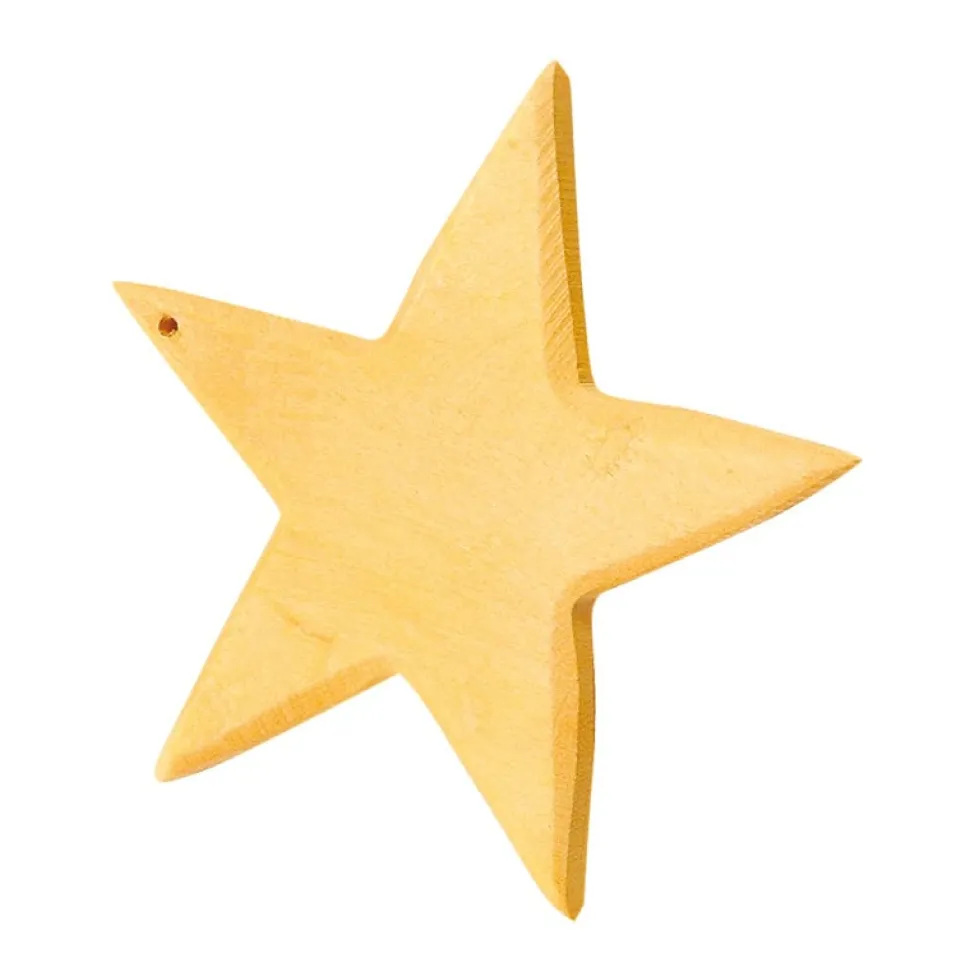 Deze houten ster van Ostheimer is geel gekleurd. De ster heeft een klein gaatje zodat je hem gemakkelijk kunt ophangen in bijvoorbeeld de kerstboom. De hoogte van deze ster is 8.5 cm.