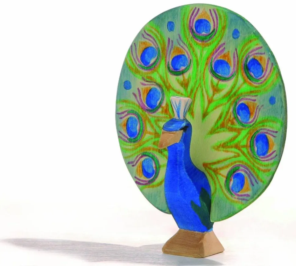 Deze pauw van Ostheimer staat er heel trots bij. Hoogte: 12 cm Verendek (hxb): 10,7×10,5 cm