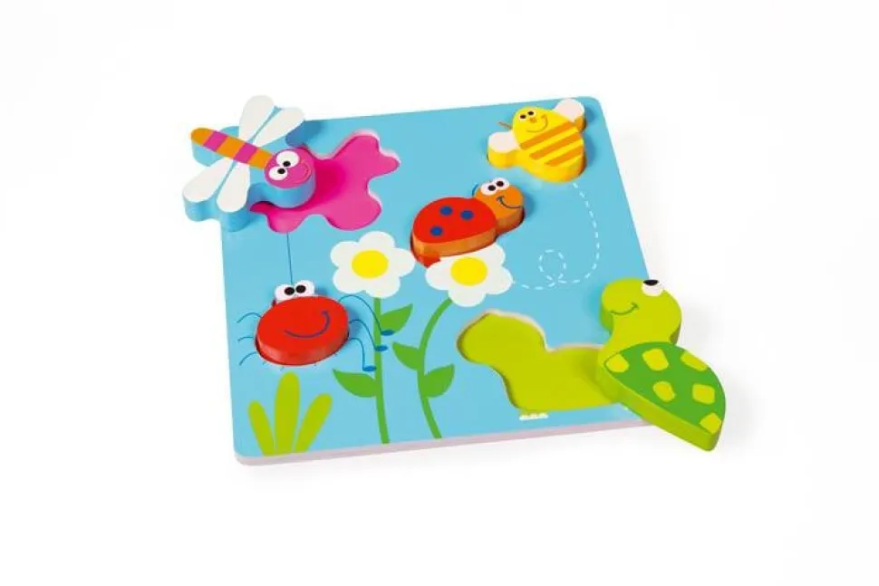 Een houten puzzel met 5 diertjes erop die op de juiste plaats gelegd moeten worden. Doordat de figuren 3 dimensionaal zijn kun je er ook zo mee spelen. Extra dikke stukjes dus ook voor de kleine handjes geschikt.