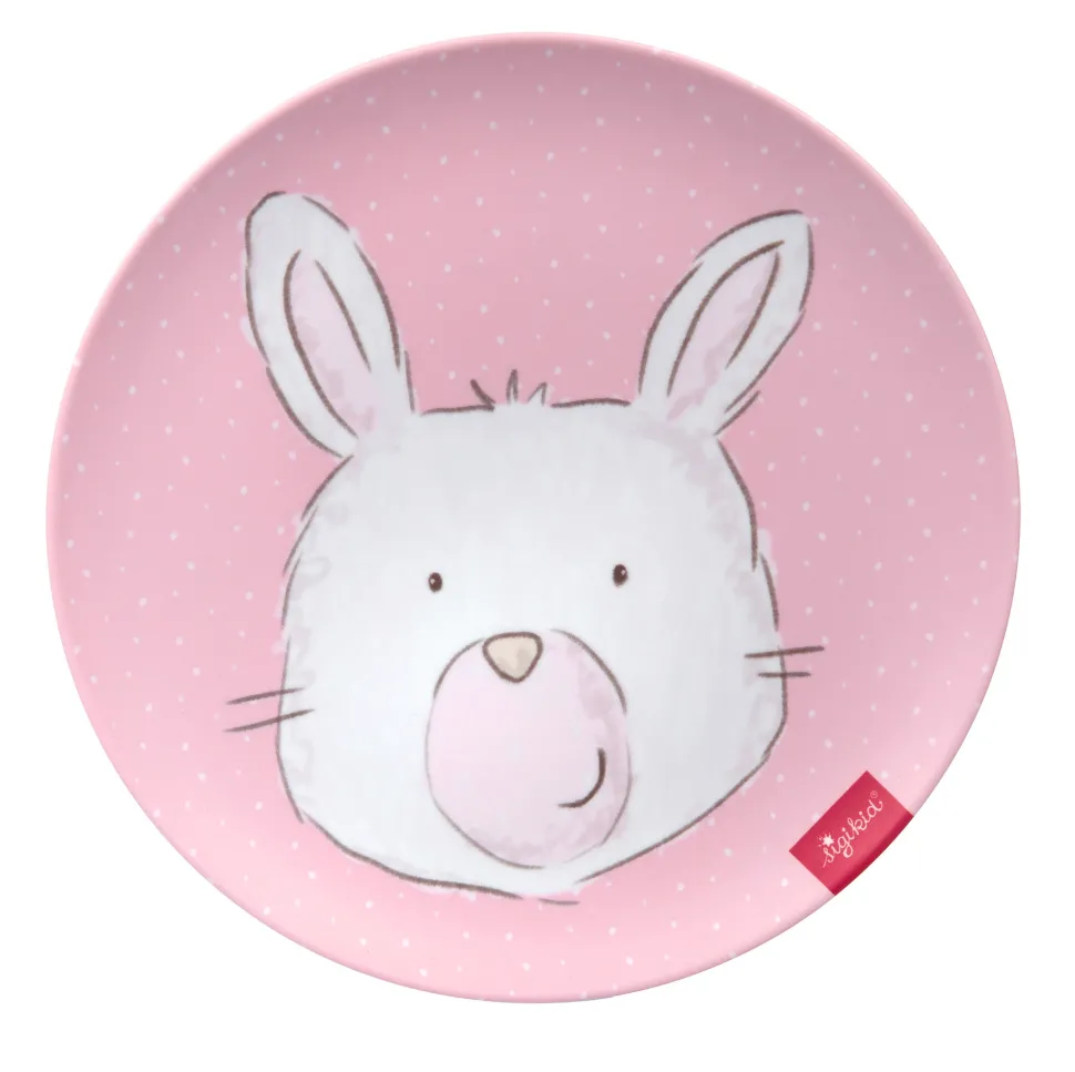 Met dit melamine bordje konijn van sigikid zullen de kinderen hun bordje maar wat graag leeg eten. Het bordje kan in de vaatwasser. Het bordje mag niet in de magnetron.